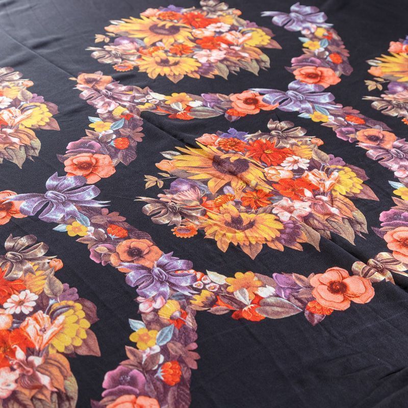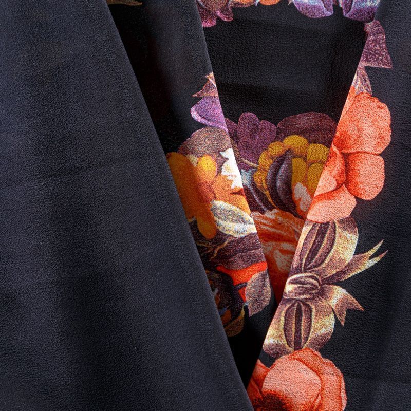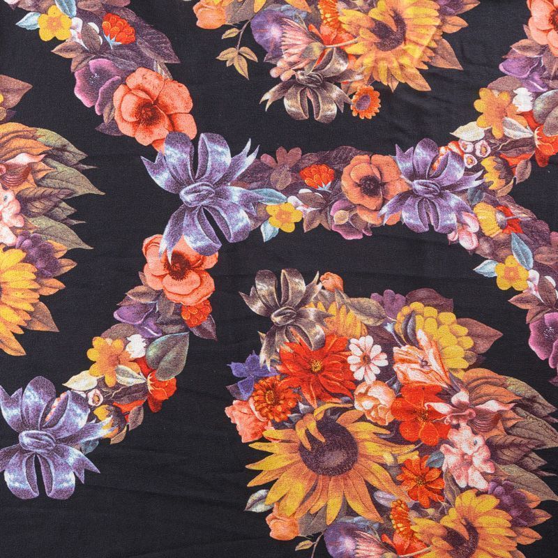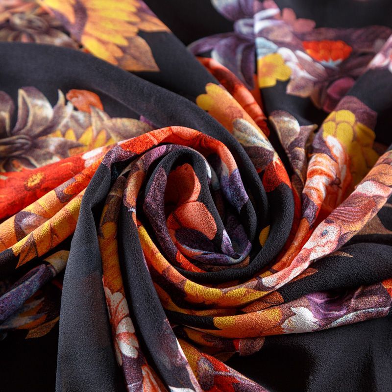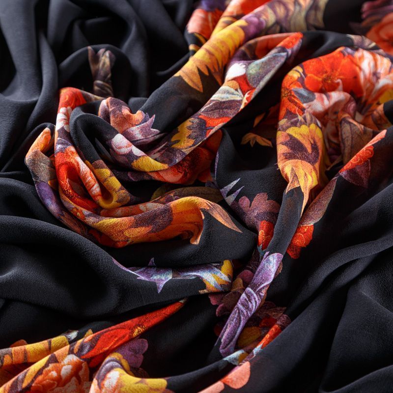 Крепдешин натуральный К29-785 черный принтованный в Салехарде