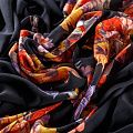 Крепдешин натуральный К29-785 черный принтованный