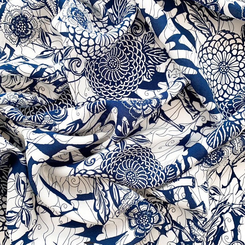 Крепдешин натуральный К32-233 молочный принтованный