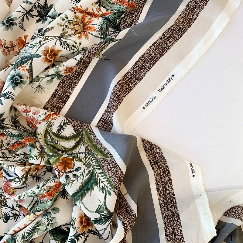 Крепдешин натуральный К32-237 бежево-серый принтованный