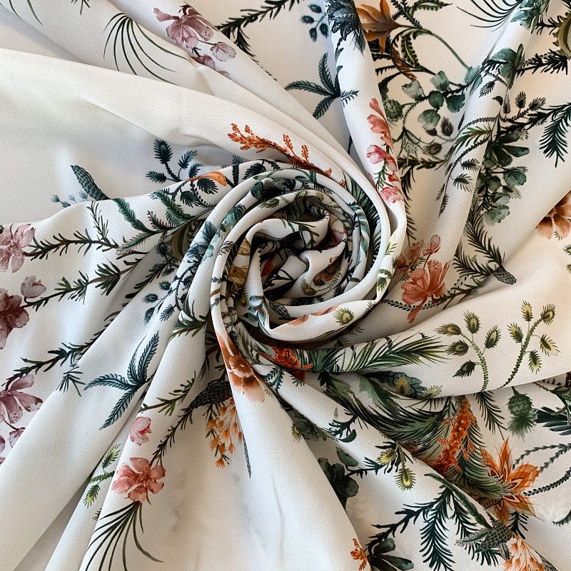 Крепдешин натуральный К32-237 бежево-серый принтованный в Салехарде
