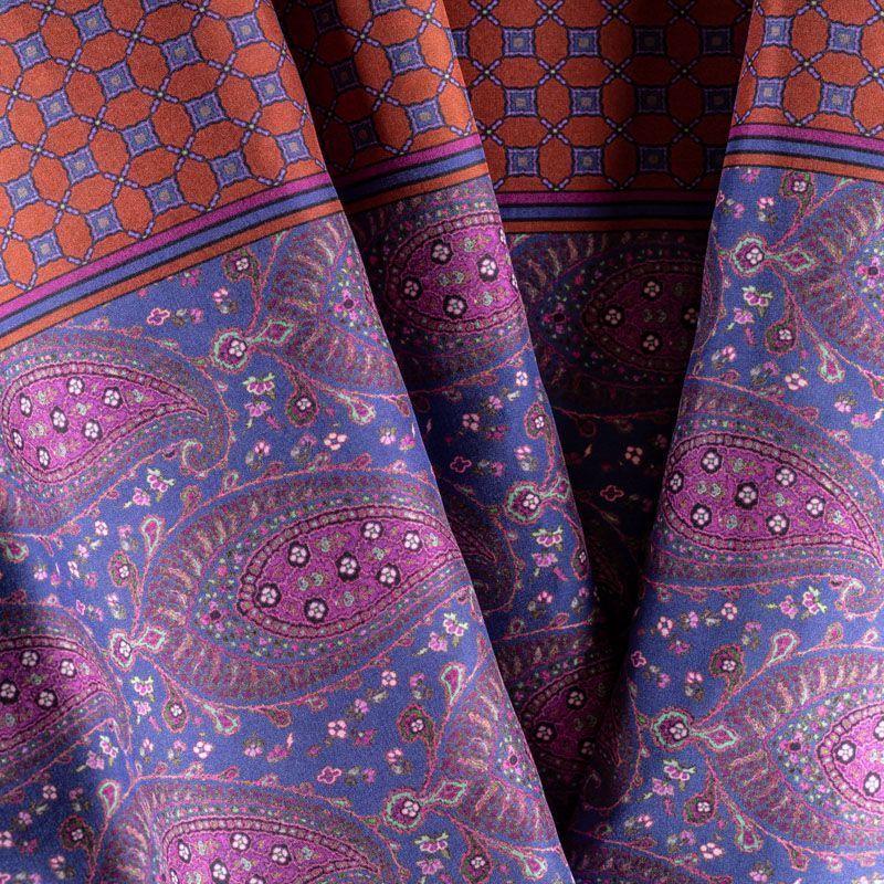 Крепдешин натуральный К32-238 фиолетово-сиреневый принтованный в Салехарде