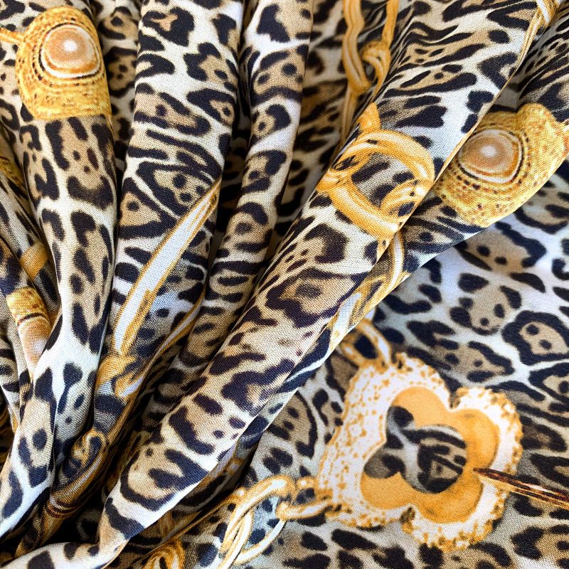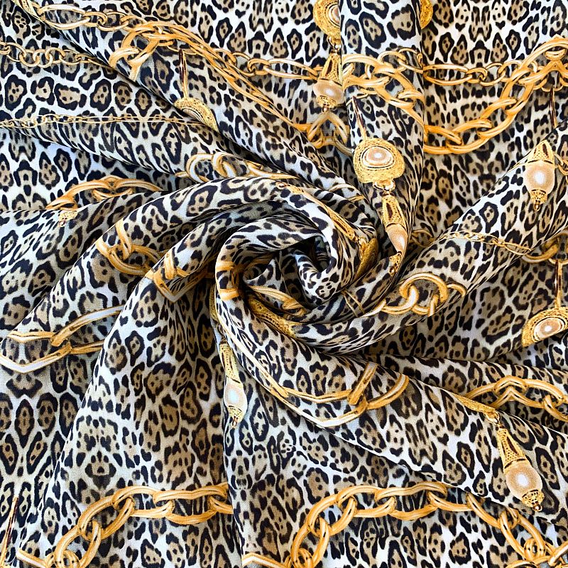 Крепдешин натуральный К32-243 бежево-серый принтованный в Салехарде