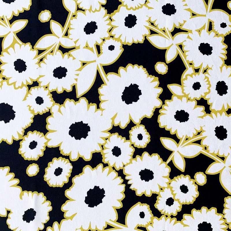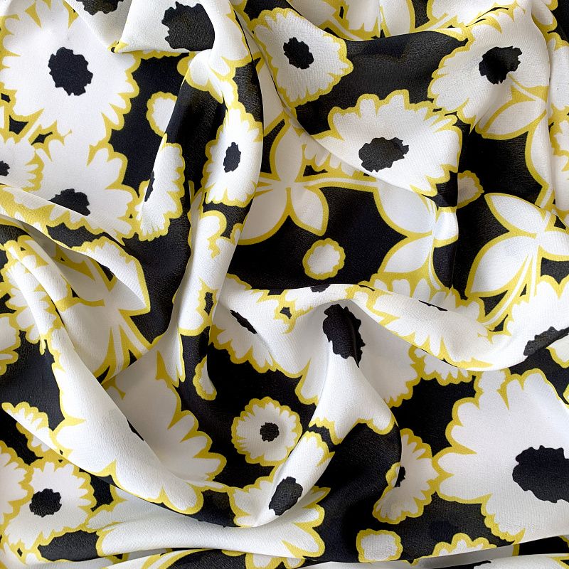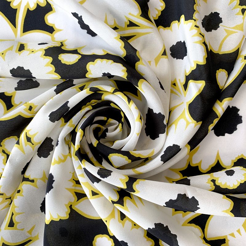 Крепдешин натуральный К32-374 черный принтованный в Салехарде