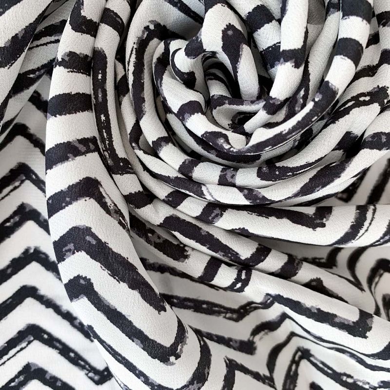 Крепдешин натуральный К32-378 молочный принтованный в Салехарде