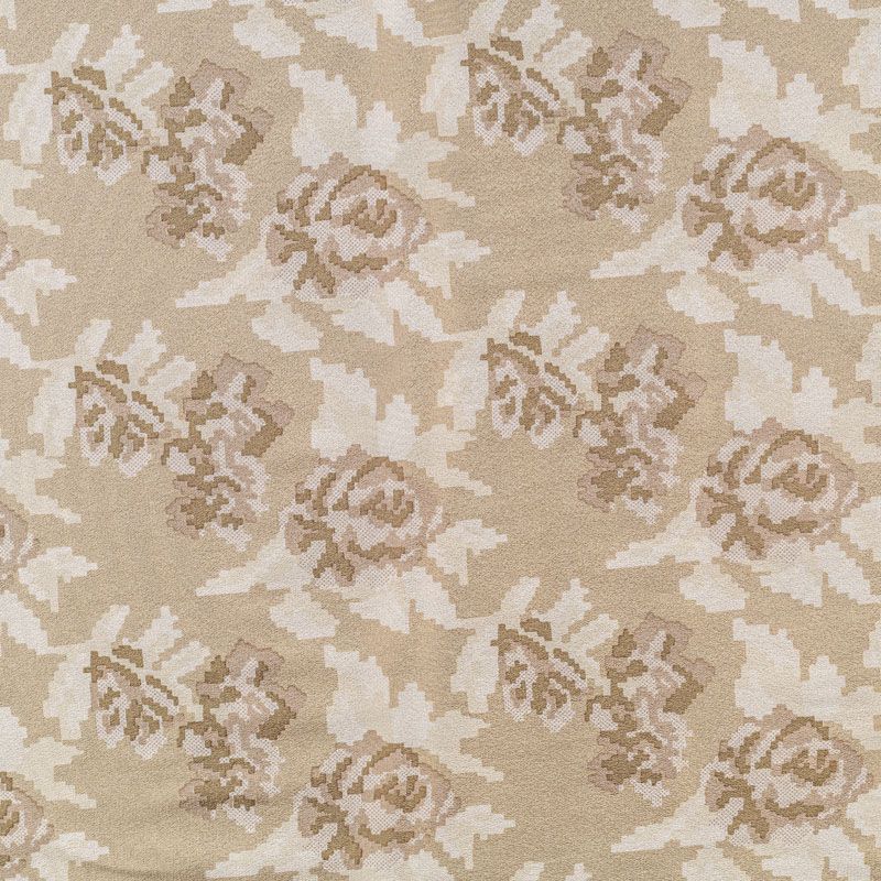 Натуральный шелковый крепдешин с матовой поверхностью, легкий, струящийся, хорошо драпируется. Цветочный принт выполнен в стиле пиксель-арт, который превращает его в абстрактный. Крепдешин прекрасно подойдет для пошива летнего сарафана, платья, блузки, костюма в пижамном стиле, широких брюк или юбки.