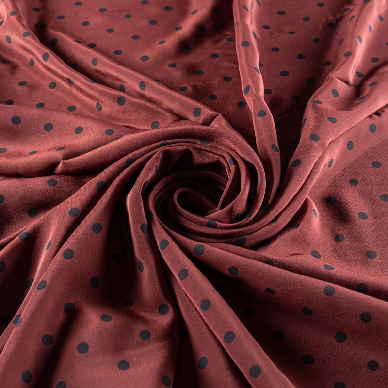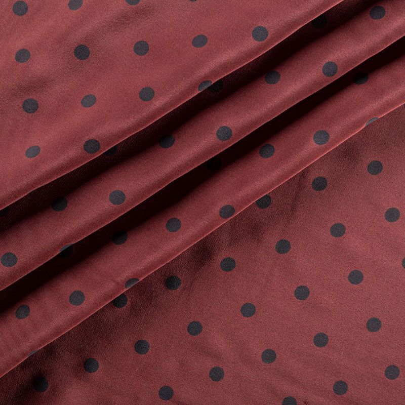 Итальянский натуральный крепдешин в сложном красивом оттенке с классическим принтом "в горошек", тонкий, не прозрачный, отлично драпируется, легкий и струящийся. Идеально подойдет для пошива платьев и сарафанов расклешенных моделей, с воланами, летящих юбок, топов, блузки, юбки, широких брюк, костюма в пижамном стиле.