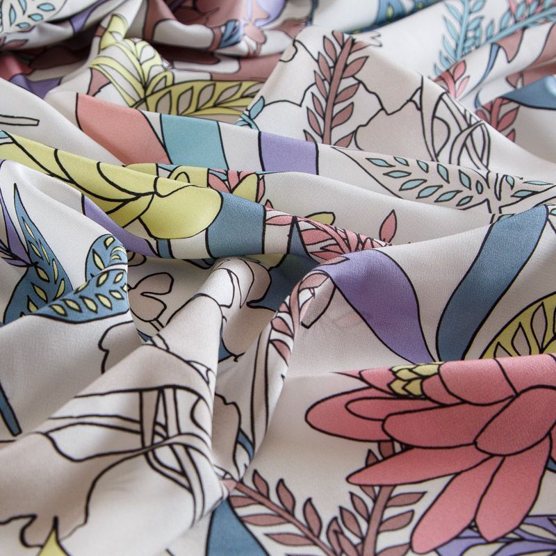Крепдешин шелковый 028-14709 айвори принтованный в Салехарде