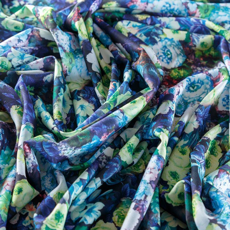 Крепдешин синтетический 029-08355 темно-синий принтованный