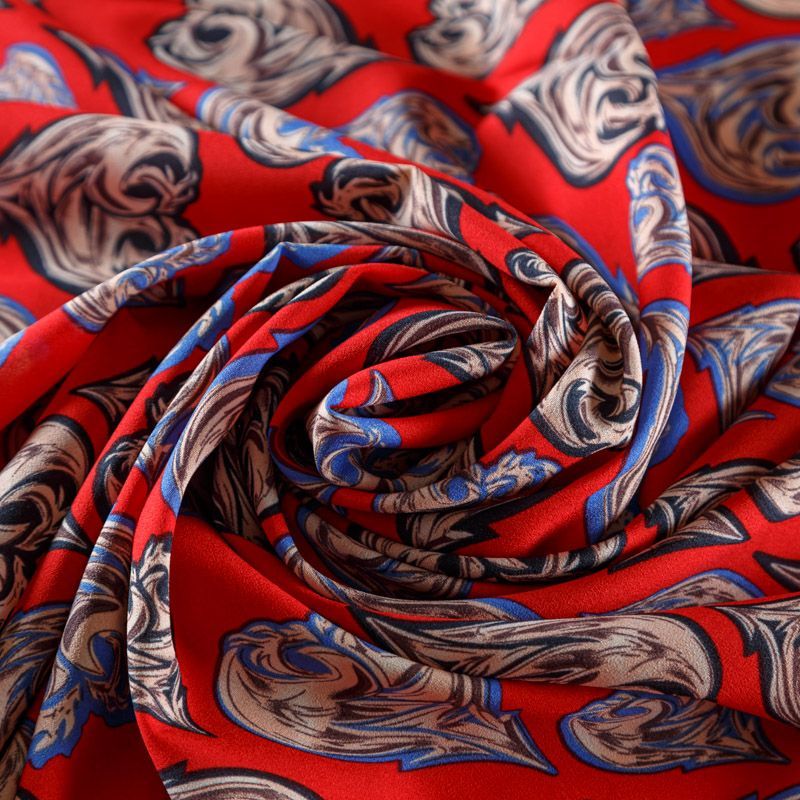 Крепдешин синтетический 029-08858 красный принтованный в Салехарде