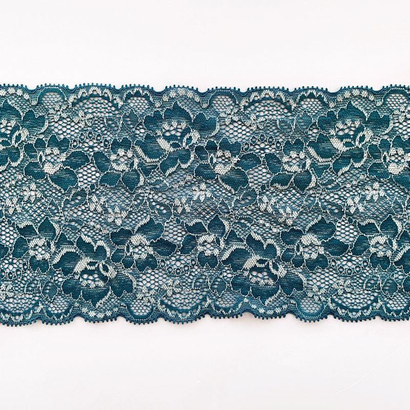 Кружево эластичное 130 мм Ф01-0084 морская волна с молочным узром в Салехарде