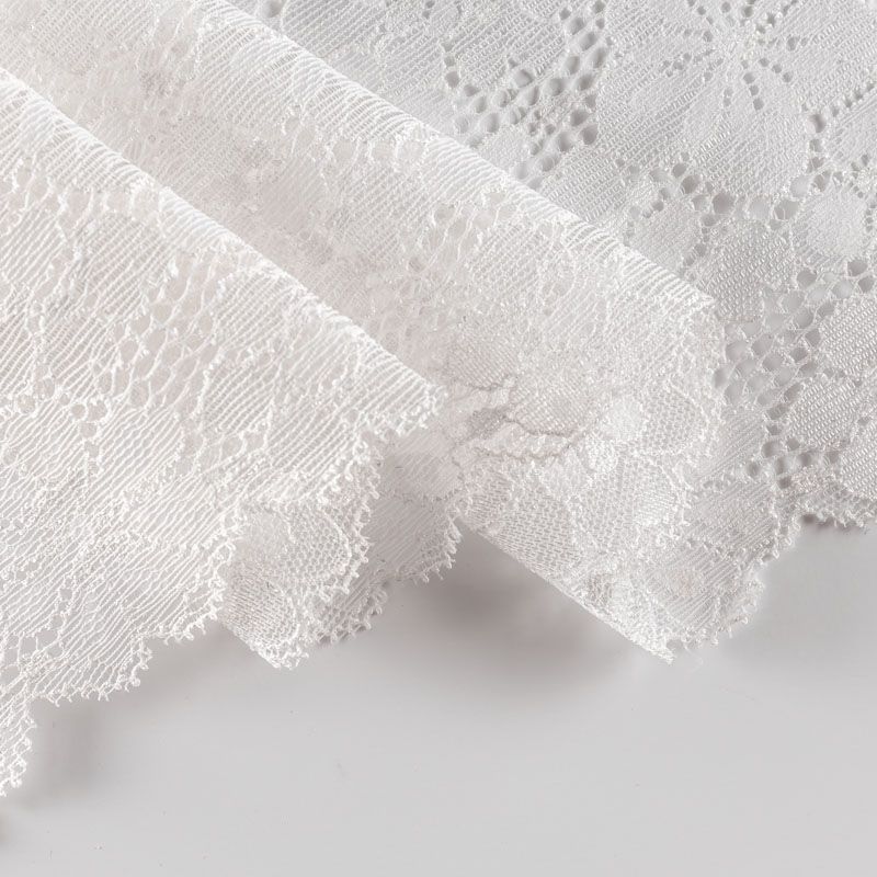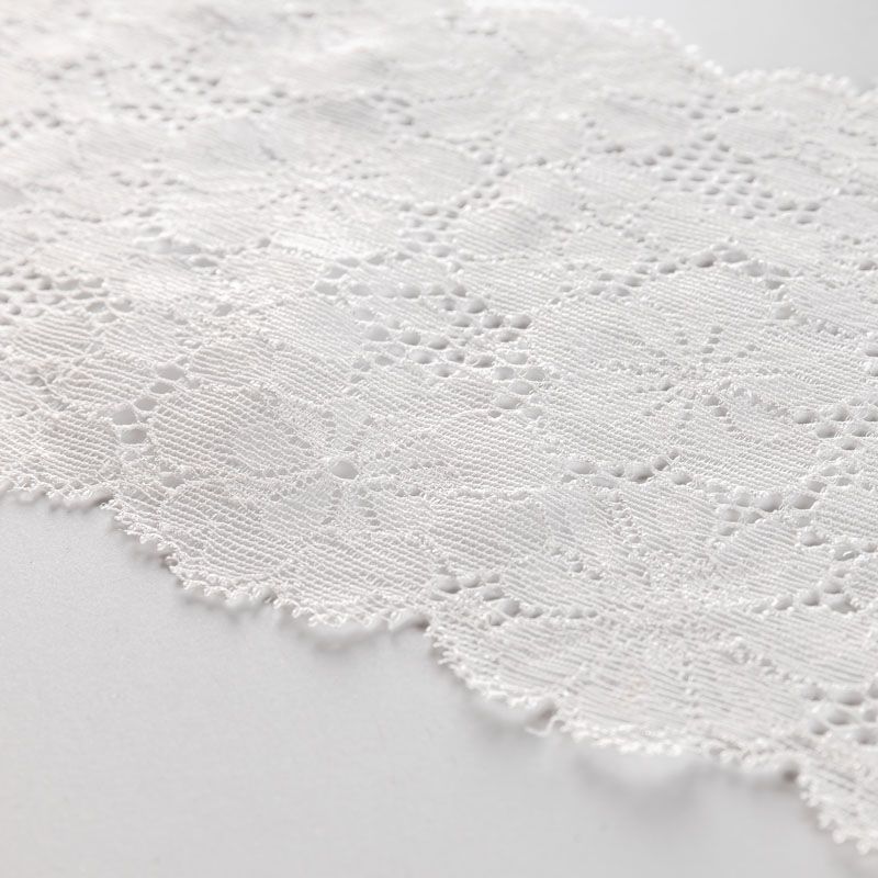Эластичное кружево сочетает в себе мягкость, прочность и красоту, благодаря своей упругости оно долго не теряет первоначальную форму. Используется для пошива нижнего белья, а так же применяется как отделочный декор в одежде.