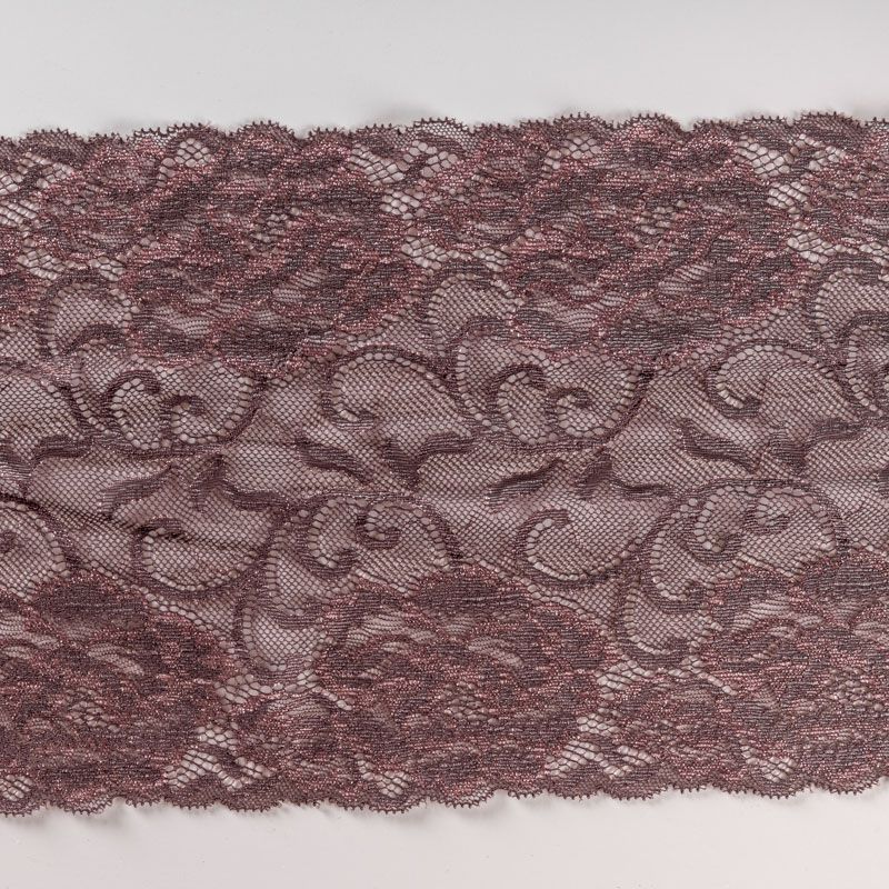 Эластичное кружево сочетает в себе мягкость, прочность и красоту, благодаря своей упругости оно долго не теряет первоначальную форму. Используется для пошива нижнего белья, а так же применяется как отделочный декор в одежде.