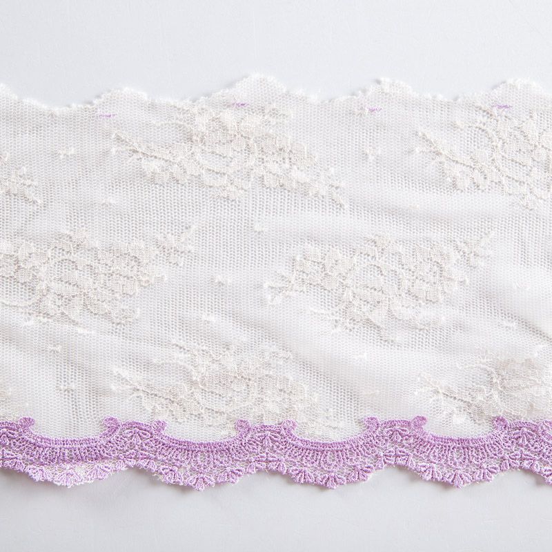 Эластичное кружево сочетает в себе мягкость, прочность и красоту, благодаря своей упругости оно долго не теряет первоначальную форму. Используется для пошива нижнего белья, а так же применяется как отделочный декор в одежде.