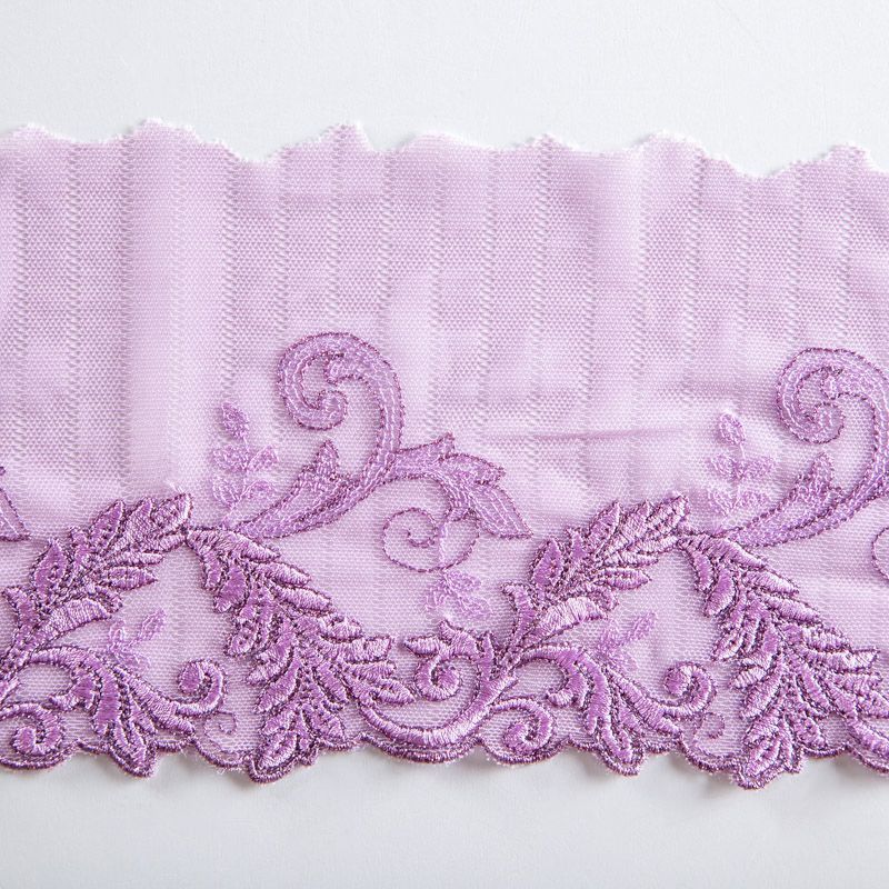 Кружево вышивка на сетке 120 мм Ф01-0007 сиреневый с люрексом в Салехарде