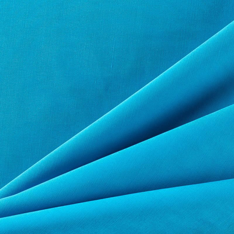Купро плательно-костюмной плотности лазурно-голубого оттенка. Ткань мягкая, пластичная, струящаяся, отлично драпируется, не просвечивает. Поверхность ткани бархатистая, похожа на мокрый шелк. Идеально подойдет для платьев свободного силуэта, брюк-палацио, юбок, шорт, туник, платья-рубашки, блузы.