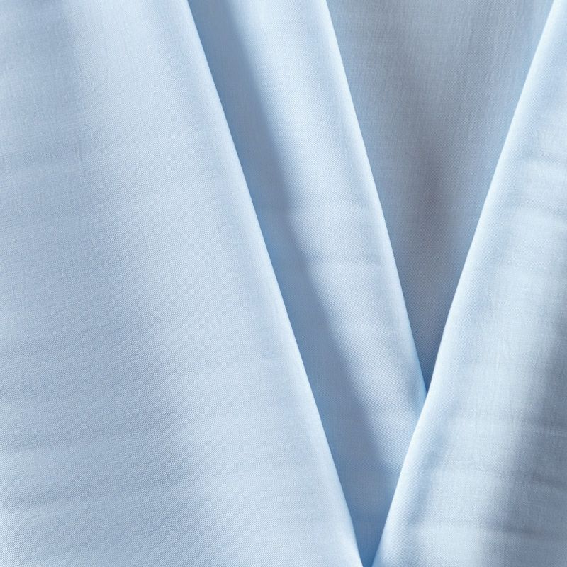 Купро плательно-костюмной плотности светло-голубого оттенка. Ткань мягкая, пластичная, струящаяся, отлично драпируется, не просвечивает. Поверхность ткани бархатистая, похожа на мокрый шелк. Идеально подойдет для платьев свободного силуэта, брюк-палацио, юбок, шорт, туник, платья-рубашки, блузы.