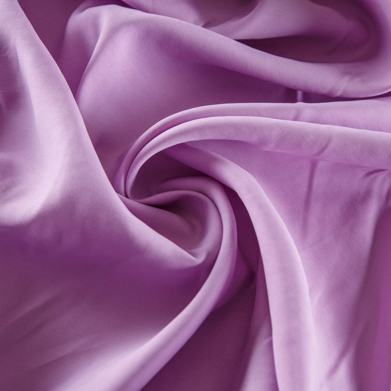 Итальянская купро плательно-костюмной плотности сиреневого оттенка. Ткань мягкая, пластичная, струящаяся, отлично драпируется, не просвечивает. Поверхность ткани бархатистая, похожа на мокрый шелк. Идеально подойдет для платьев свободного силуэта, брюк-палацио, юбок, шорт, туник, платья-рубашки, блузы.