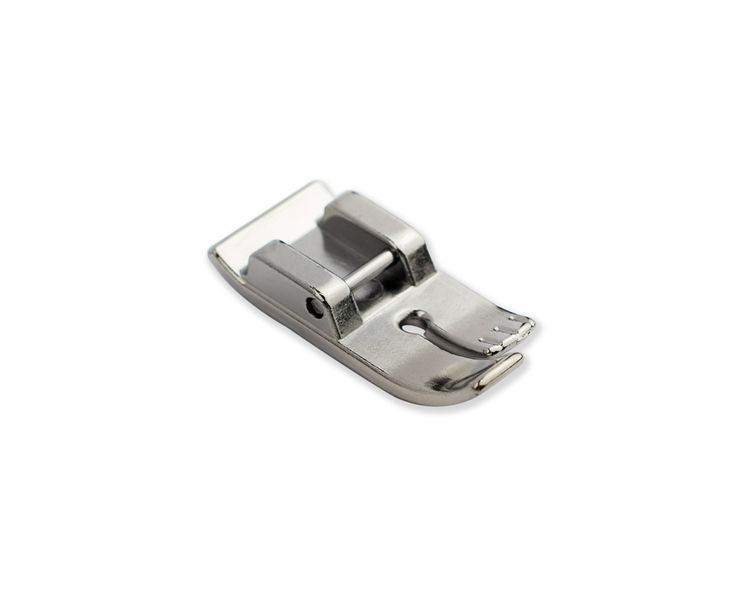 Лапка предназначена для шитья прямой строчкой тонких тканей или по срезам материала. Круглое отверстие для иглы хорошо удерживает материал и позволяет избежать сосбаривание ткани.