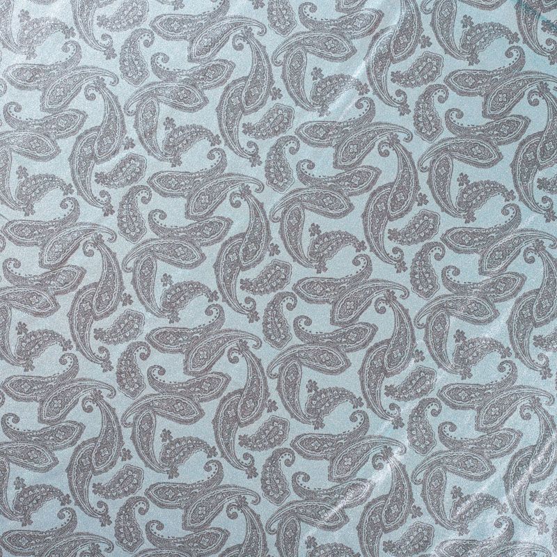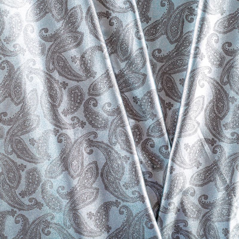Итальянский бифлекс с монохромным орнаментом пейсли. Поверхность ткани с блеском и гладкая. Отлично тянется, одежда из него не сковывает движения. Хорошо впитывает влагу и быстро высыхает, не вызывет аллергии и раздражения. Используется для пошива эстрадных, спортивных костюмов, купальников, боди.