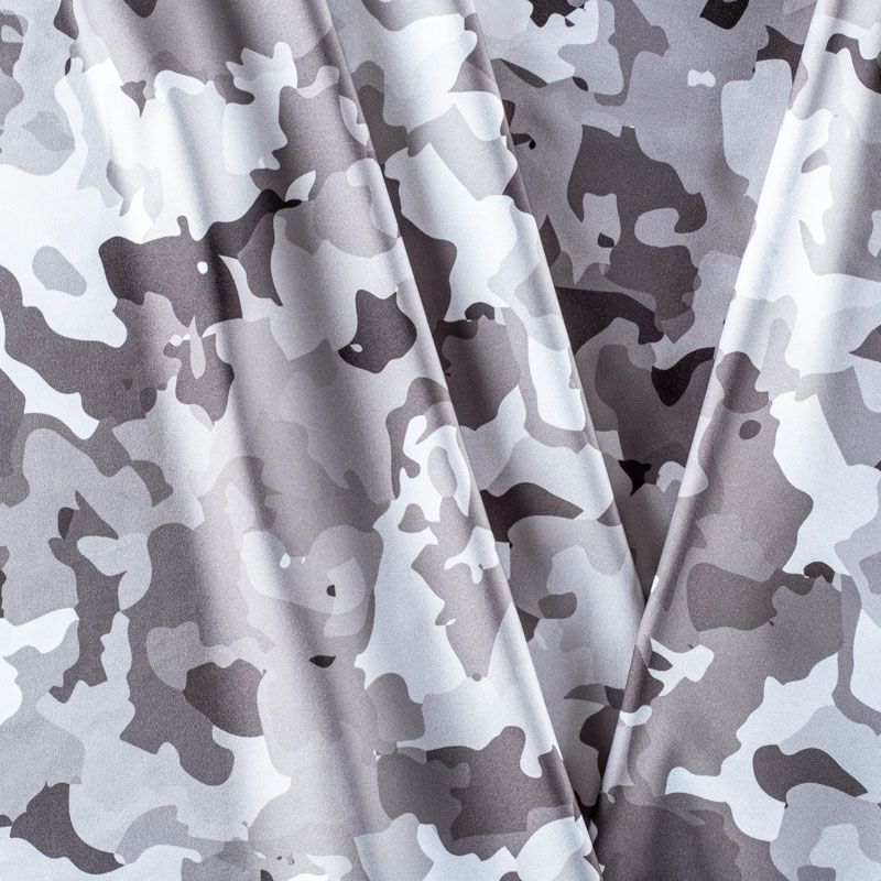 Итальянский бифлекс с монохромным камуфляжным принтом. Поверхность ткани матовая и гладкая. Отлично тянется, одежда из него не сковывает движения. Хорошо впитывает влагу и быстро высыхает, не вызывет аллергии и раздражения. Используется для пошива эстрадных, спортивных костюмов, купальников, боди.