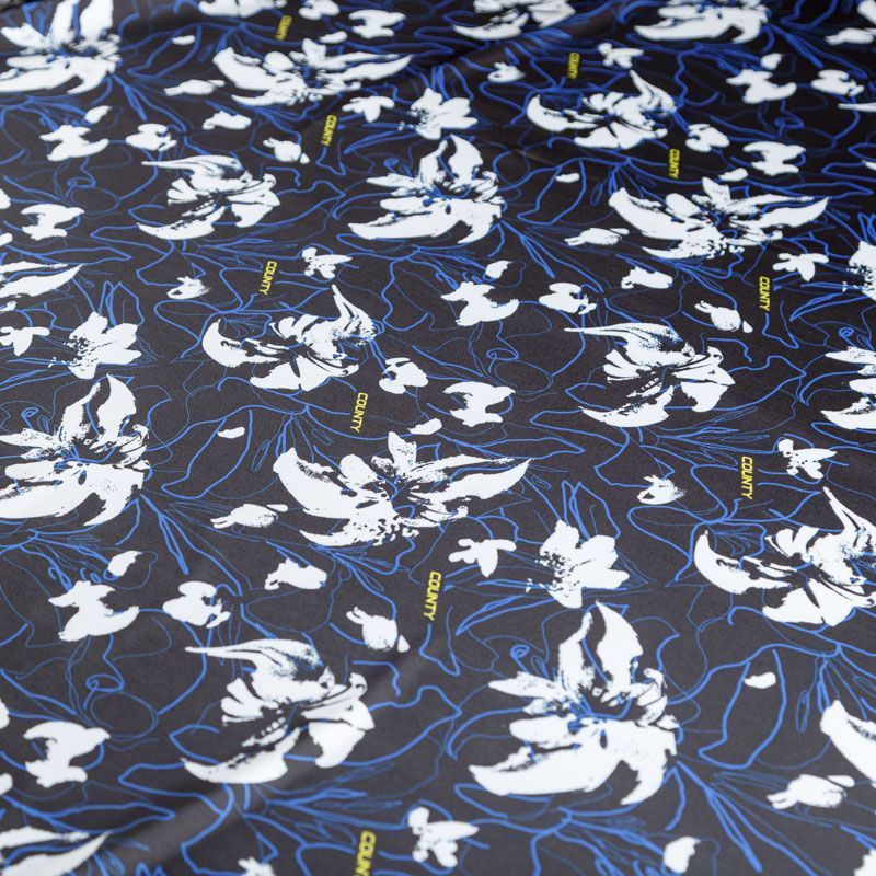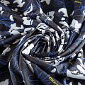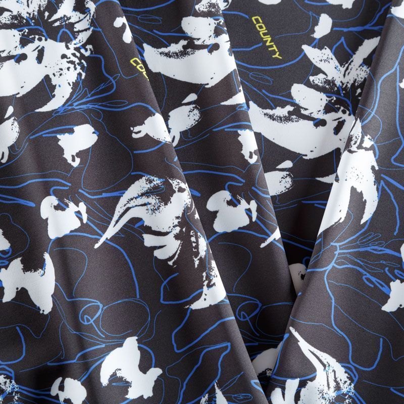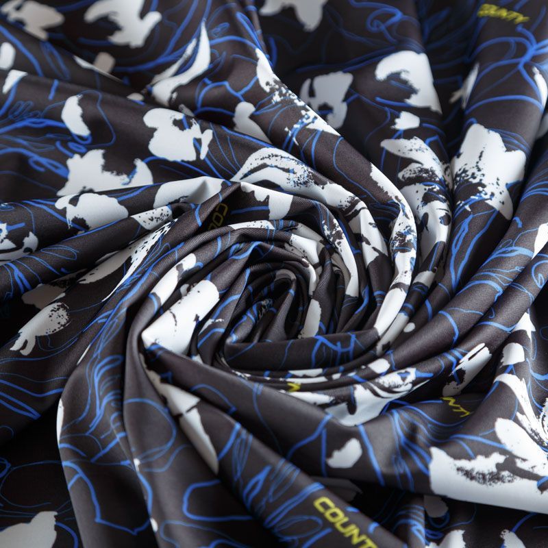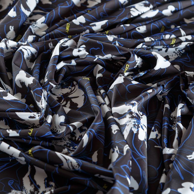Итальяская качественная, красивая и приятная на ощупь лайкра черного цвета с фантазийным цветочным принтом в контрастных оттенках. Поверхность ткани матовая и гладкая. Идеально облегает фигуру, тянется по двум направлениям, хорошо драпируется, отлично держит форму, устойчива к пилингу, долговечна и гигроскопична. Используется для пошива одежды для танцев, гимнастики, фигурного катания, для велоспорта, легкой атлетики и аэробики, фитнеса и других видов спорта, для купальников, женского белья, театральных, цирковых и эстрадных костюмов.