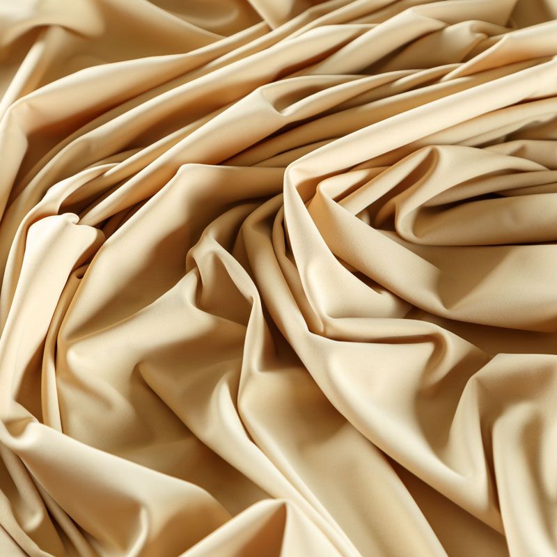 Поверхность ткани гладкая с характерным блеском или матовая. Очень мягкий, нежный, приятный на ощупь материал. Используется для пошива эстрадных, спортивных костюмов и купальников. Отлично тянется по всем направлениям, одежда из него не сковывает движения. Хорошо впитывает влагу и быстро высыхает, не вызывет аллергии и раздражения.