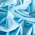 Итальяская качественная, красивая и приятная на ощупь лайкра с перфорацией голубого оттенка. Поверхность ткани матовая, гладкая, шелковистая на ощупь. Идеально облегает фигуру, тянется по двум направлениям, хорошо драпируется, отлично держит форму, устойчива к пилингу, долговечна и гигроскопична. Используется для пошива одежды для танцев, гимнастики, фигурного катания, для велоспорта, легкой атлетики и аэробики, фитнеса и других видов спорта, для купальников, женского белья, театральных, цирковых и эстрадных костюмов.