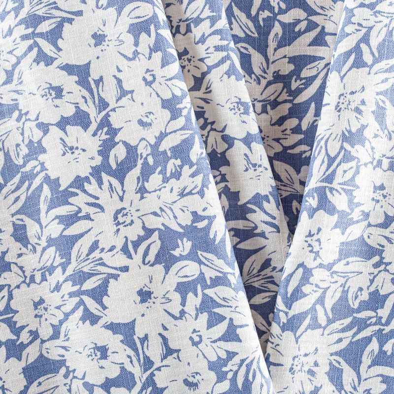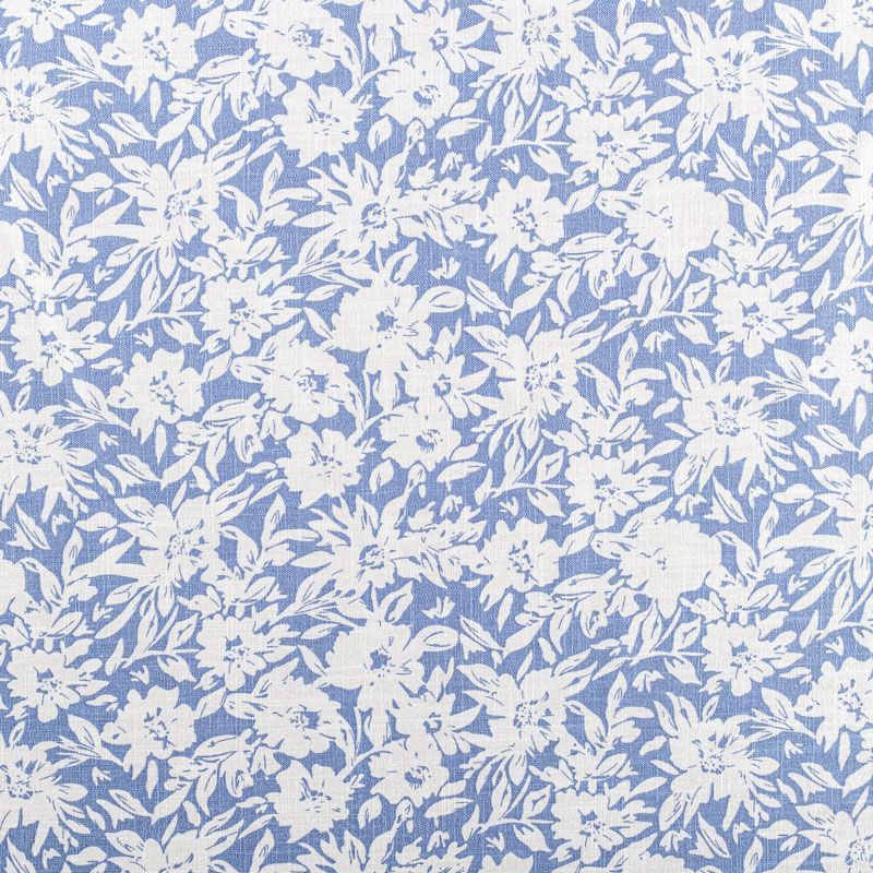 Льняная плательная ткань с добавлением вискозы приглушенного голубого цвета с цветочным принтом. Материал прочный, с выразительной матовой рельефной поверхностью, полотняным плетением, хорошо держит форму, мягкий на ощупь, пластичный, отлично драпируется. Прекрасно подойдет для пошива летних платьев, сарафанов, юбок, рубашек, брюк и шорт.