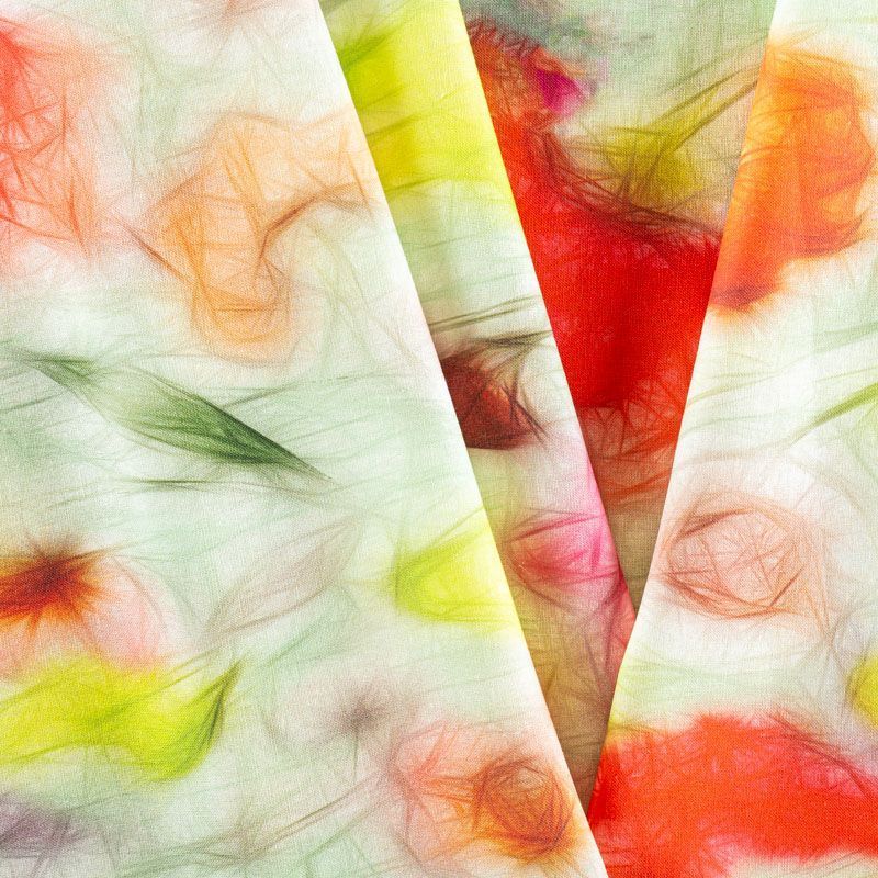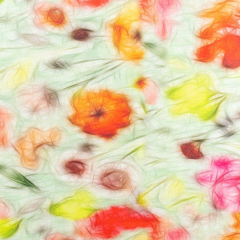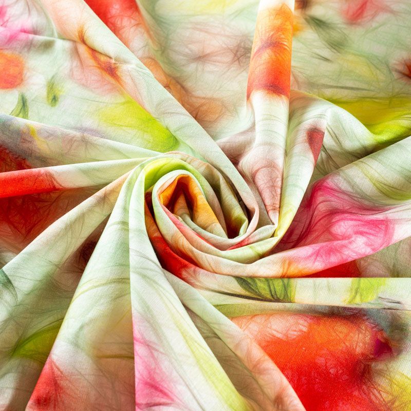 Льняная плательно-рубашечная ткань с добавлением бемерии в светло-салатовых оттенках с ярким абстрактно-цветочным принтом. Материал прочный, с выразительной матовой рельефной поверхностью, полотняным плетением, хорошо держит форму, мягкий на ощупь, пластичный, отлично драпируется. Прекрасно подойдет для пошива летних платьев, сарафанов, юбок, рубашек, брюк и шорт.