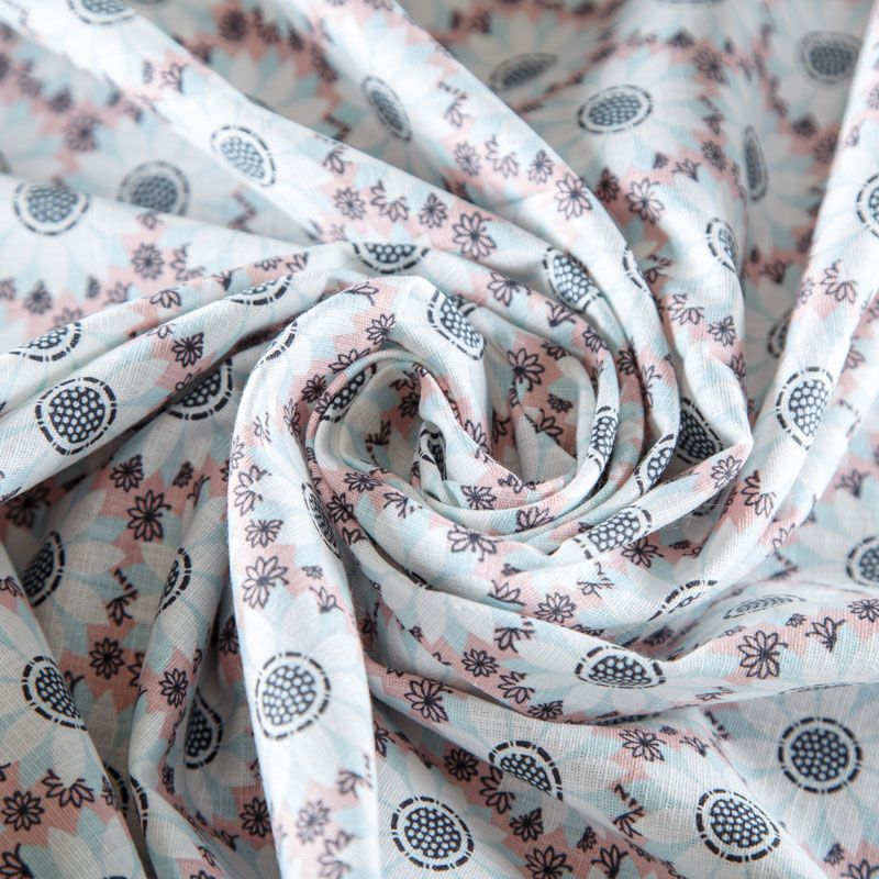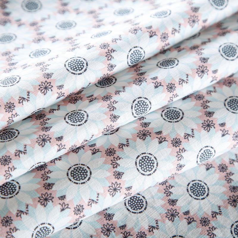 Лен натуральный 035-07870 выбеленный голубой принтованный в Салехарде