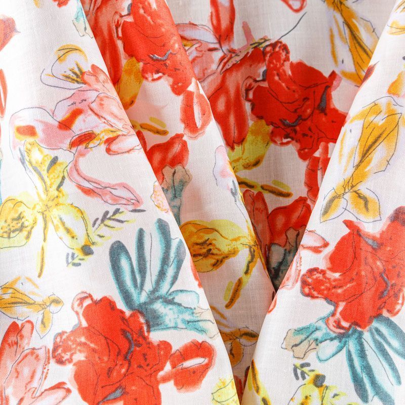 Лен натуральный 035-08127 молочный принтованный в Салехарде