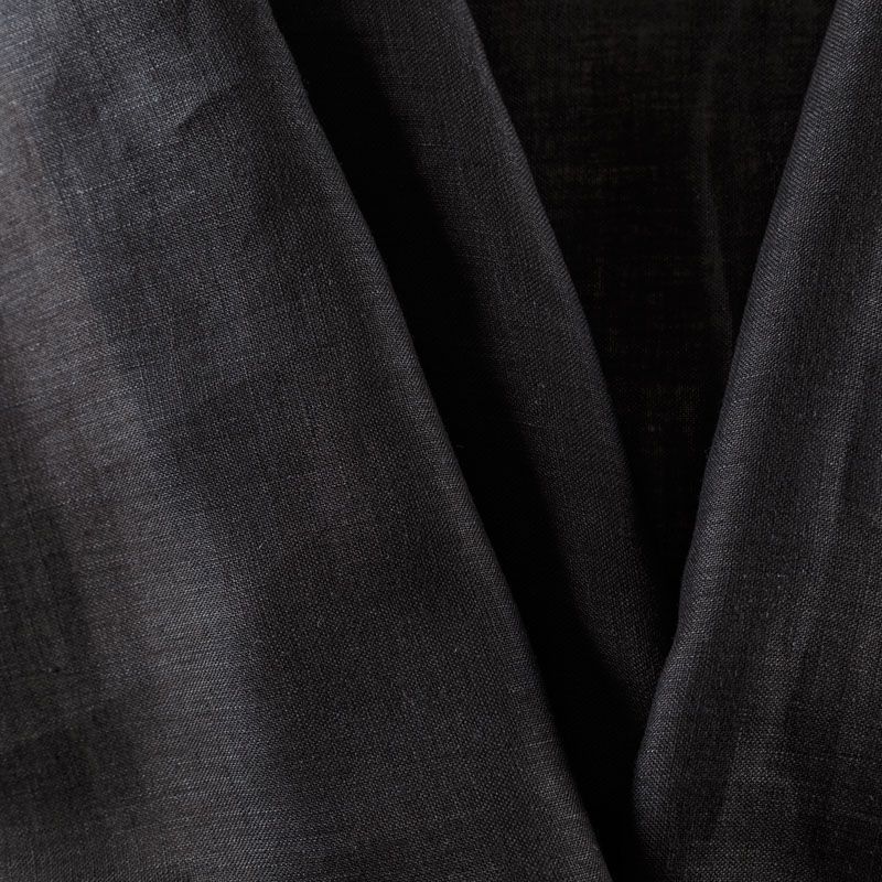 Итальянский плательно-рубашечный лен черного цвета. Ткань прочная, имееет на ощупь приятную, гладкую поверхность, а визуально - выраженный рельеф и полотняное переплетение, пластичная, хорошо драпируется, полупрозрачная. Подойдет для пошива широких брюк, рубашек, туники, юбок, платьев, сарафанов, топов, комбинезонов.