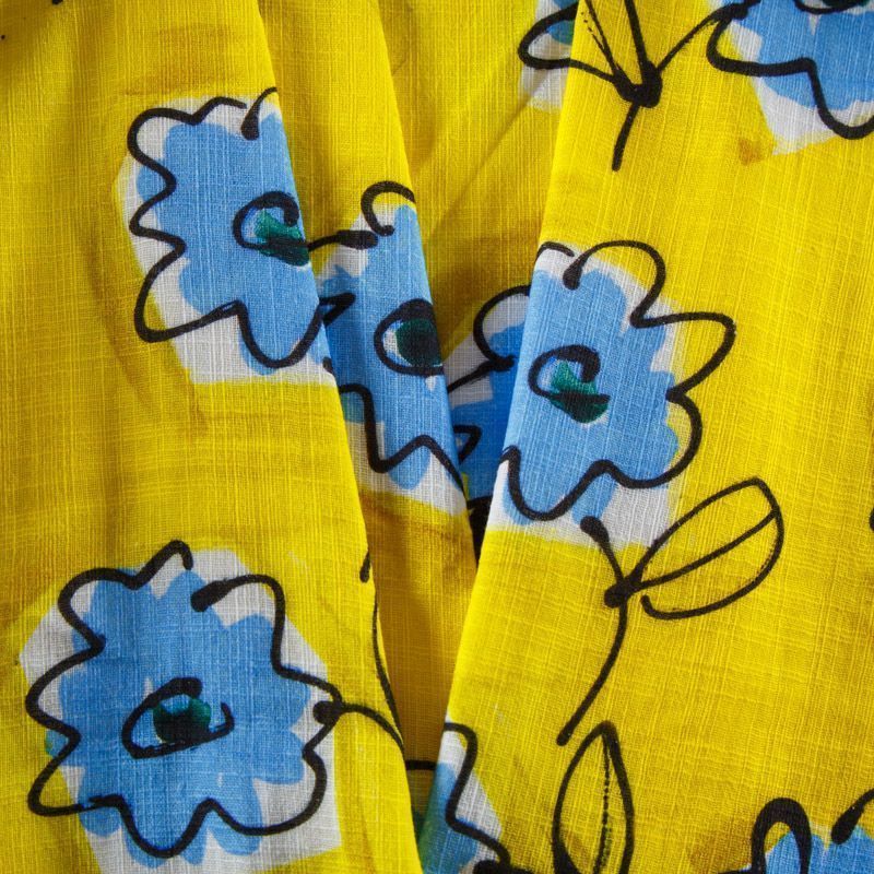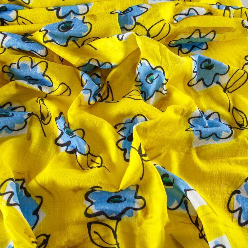 Лен натуральный 035-12588 желтый принтованный