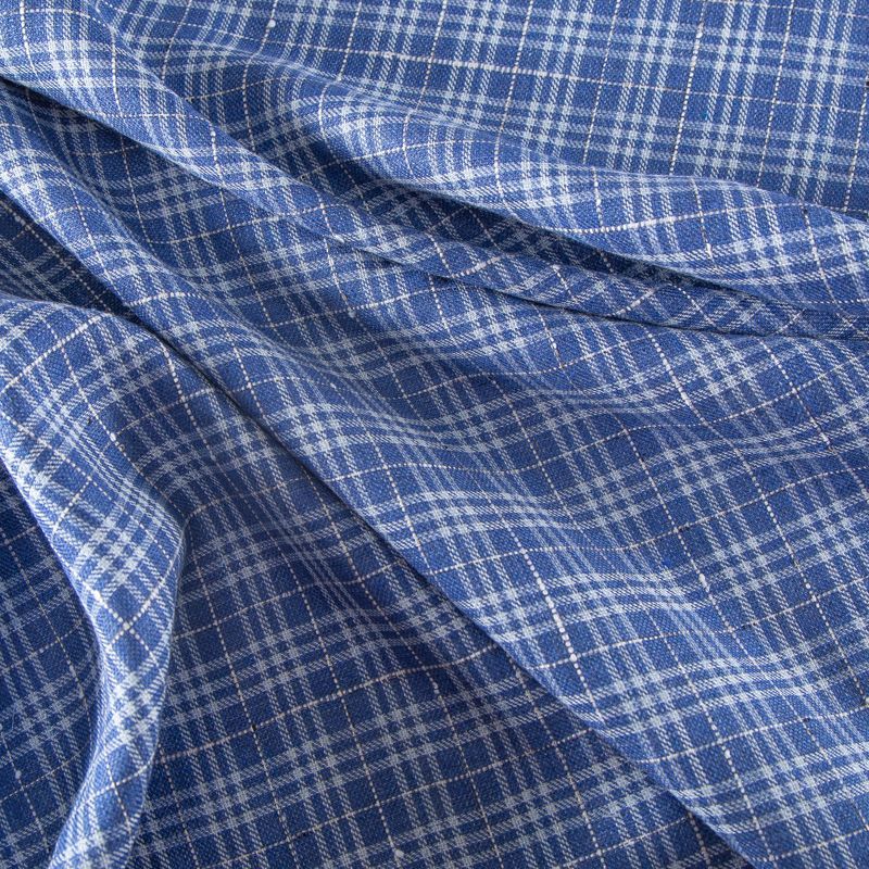 Лен натуральный 035-19980 сине-голубой клетка в Салехарде
