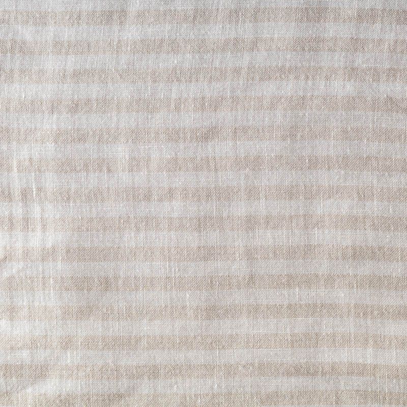 Прочный, выразительная матовая рельефная поверхность, полотняное переплетение, хорошо держит форму, мягкий на ощупь, пластичный, отлично драпируется. Прекрасно подойдет для пошива летних платьев, сарафанов, юбок, рубашек, брюк и шорт. Льняная плательная ткань с серой полоской. Ширина полоски - 1 см.