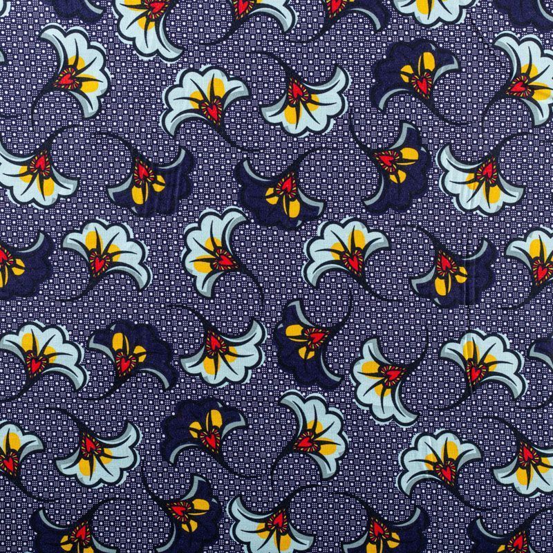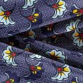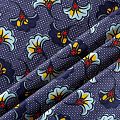 Итальянский плательно-рубашечный лен с добавлением вискозы темно-синего оттенка со стилизованным цветочным принтом. Ткань прочная, имееет выразительную матовую рельефную поверхность и полотняное переплетение, хорошо держит форму. Подойдет для пошива брюк, шорт, юбок, платьев, сарафанов, топов, комбинезонов, жакетов, кардиганов.