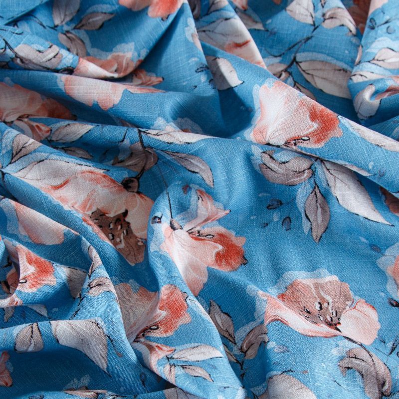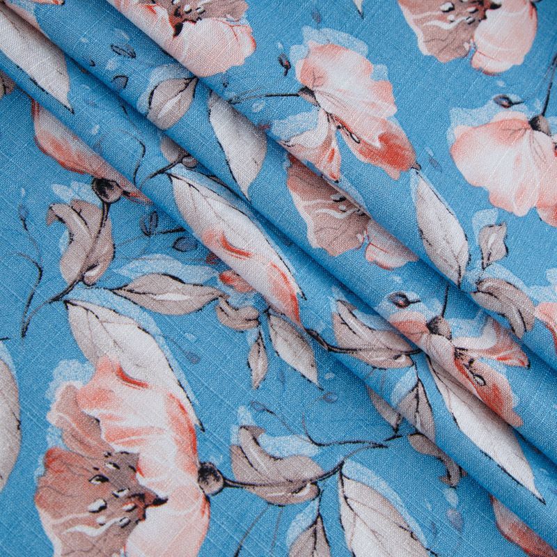 Лен-вискоза 035-13864 голубой принтованный в Салехарде
