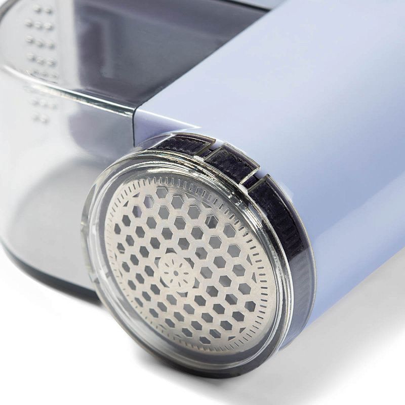 Машинка для удаления катышков на батарейках в миниформате мгновенно возвращает шерстяной одежде вид новой вещи. Режущая вставка с тремя острыми лезвиями вращается в режущей головке, аккуратно срезает выступающие ворсинки и собирает их в прозрачную приемную емкость. Прибор можно очень легко разобрать для очистки и очистить прилагаемой щеткой. Для электропитания машинке для удаления катышков «Мини» нужны 2 батарейки типа АА. Батарейки в комплект не входят.