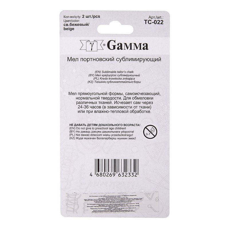 Мел портновский Gamma сублимирующий 2 шт TC-022 светло-бежевый