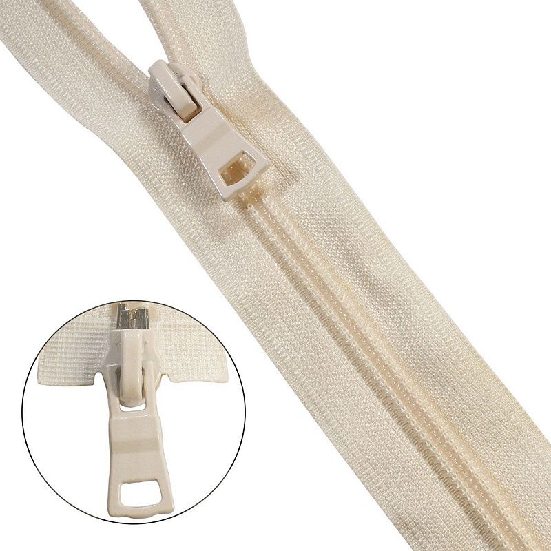 Молния витая разъемного типа с двумя замками. Используется при изготовлении, постельного белья, сумок, декоративных наволочек, различных аксессуаров. Молния выполнена из материалов высокого качества. Текстильная лента из полиэстера прошла противоусадочную обработку, не линяет при стирке и химчистке. Звенья у витой молнии пластиковые, поэтому застежка имеет небольшой вес и подходит для легких тканей. Два металлических слайдера свободно скользят по текстильной ленте. Цвет звеньев и текстильной ленты молнии совпадают, делая ее незаметной на изделии.