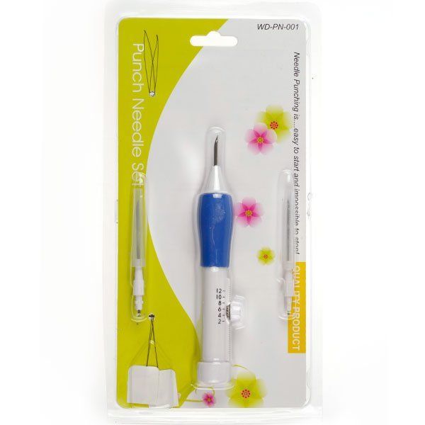 В набор входят: приспособление-стержень со шкалой и винтом для регулирования длины петли нити, три специальных иглы для вышивания в ковровой технике: иглы разного диаметра, два нитковдевателя.