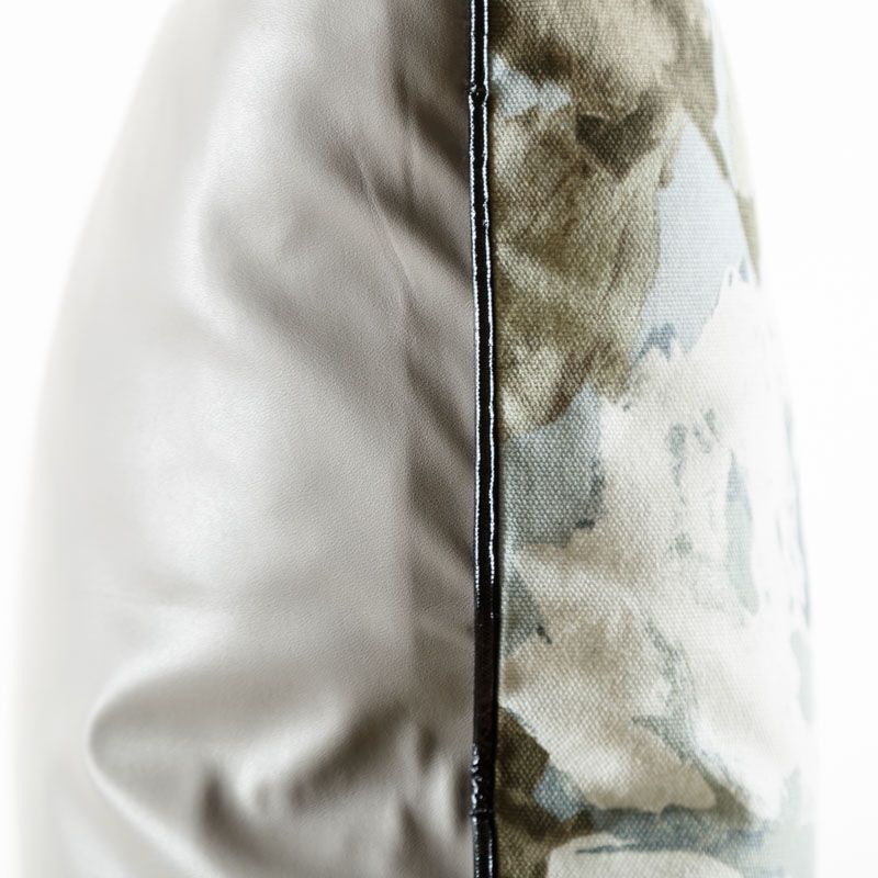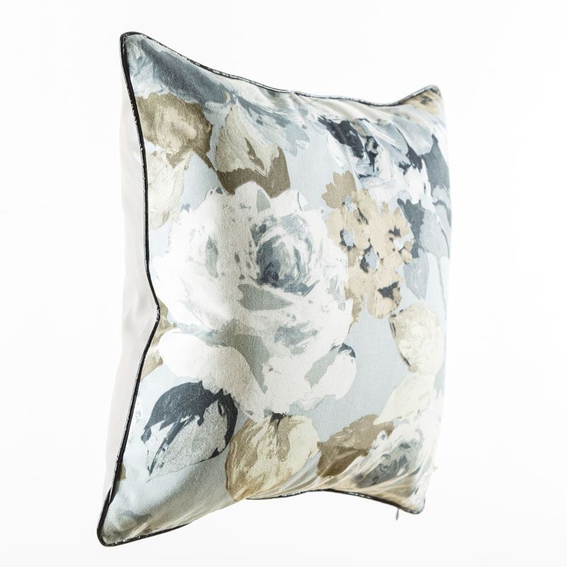 Оригинальная дизайнерская наволочка на подушку 45х45 см. Лицевая сторона выполнена из портьерной ткани в серо-голубых оттенках с акварельным цветочным принтом. Обратная сторона - экокожа светло-серого цвета. Наволочка декорирована черным лакированным кантом. Потайная молния расположена в нижнем шве. Декоративные подушки сделают акцет на цветовой гамме Вашего помещения, подчеркнут особенности интерьерного стиля или тематику оформления. Внимание! Подушка-вкладыш приобретается отдельно.