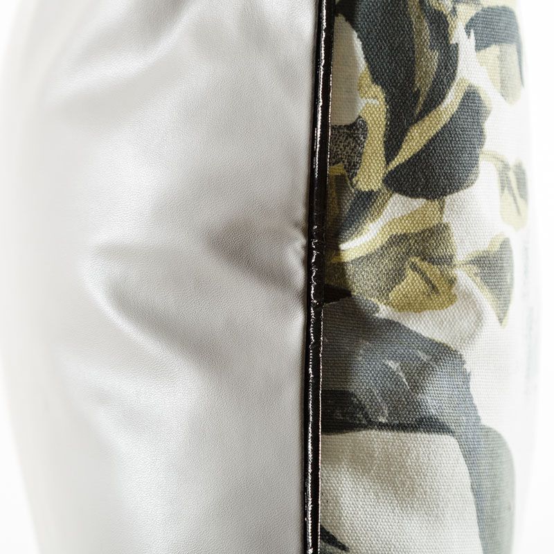 Оригинальная дизайнерская наволочка на подушку 45х45 см. Лицевая сторона выполнена из портьерной ткани в серо-голубых оттенках с акварельным цветочным принтом. Обратная сторона - экокожа светло-серого цвета. Наволочка декорирована черным лакированным кантом. Потайная молния расположена в нижнем шве. Декоративные подушки сделают акцет на цветовой гамме Вашего помещения, подчеркнут особенности интерьерного стиля или тематику оформления. Внимание! Подушка-вкладыш приобретается отдельно.