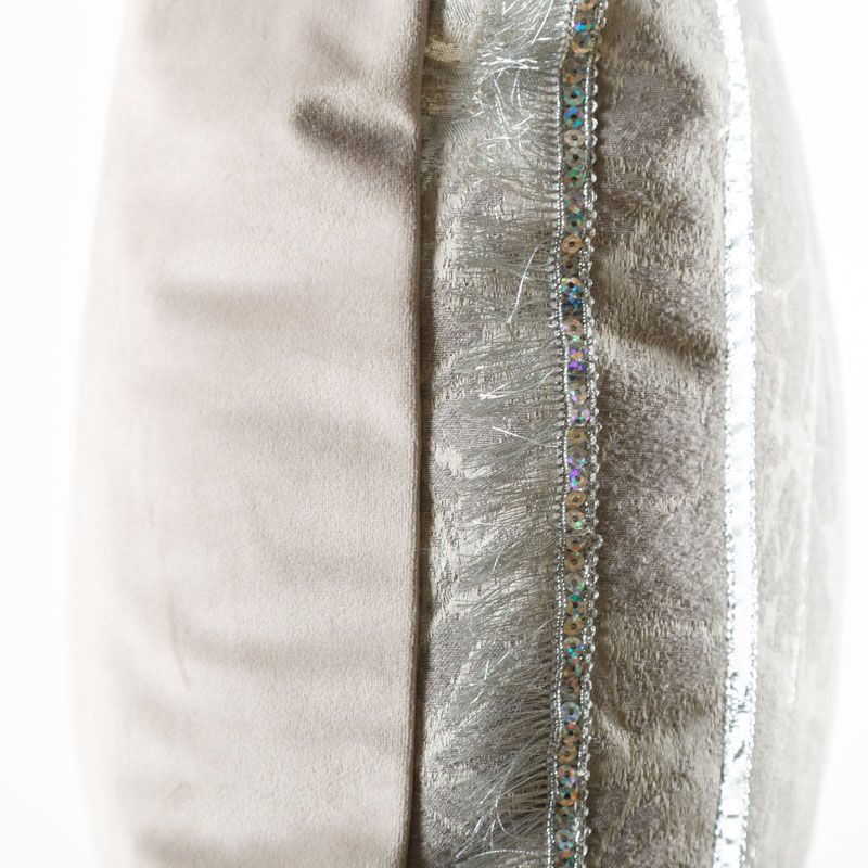 Оригинальная дизайнерская наволочка на подушку 45х45 см. Лицевая сторона выполнена из жаккардовой ткани в серебристых оттенках и декорирована кантом и бахромой с пайетками. Обратная сторона - мягкий бархат серого оттенка. Потайная молния расположена в нижнем шве. Декоративные подушки сделают акцет на цветовой гамме Вашего помещения, подчеркнут особенности интерьерного стиля или тематику оформления. Внимание! Подушка-вкладыш приобретается отдельно.