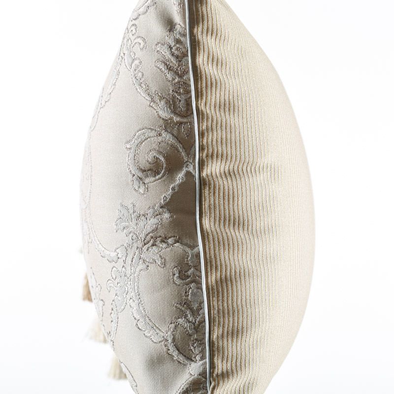 Оригинальная дизайнерская наволочка на подушку 50х40 см. Выполнена из жаккарда и декорирована круглым кантом и бахромой. Потайная молния расположена в нижнем шве. Декоративные подушки сделают акцет на цветовой гамме Вашего помещения, подчеркнут особенности интерьерного стиля или тематику оформления. Внимание! Подушка-вкладыш или синтепон приобретаются отдельно.