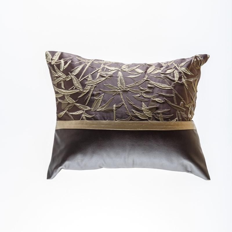 Оригинальная дизайнерская наволочка на подушку 50х40 см. Выполнена из жаккарда Giber и экокожи и декорирована тесьмой. Потайная молния расположена в нижнем шве. Декоративные подушки сделают акцет на цветовой гамме Вашего помещения, подчеркнут особенности интерьерного стиля или тематику оформления. Внимание! Подушка-вкладыш или синтепон приобретаются отдельно.