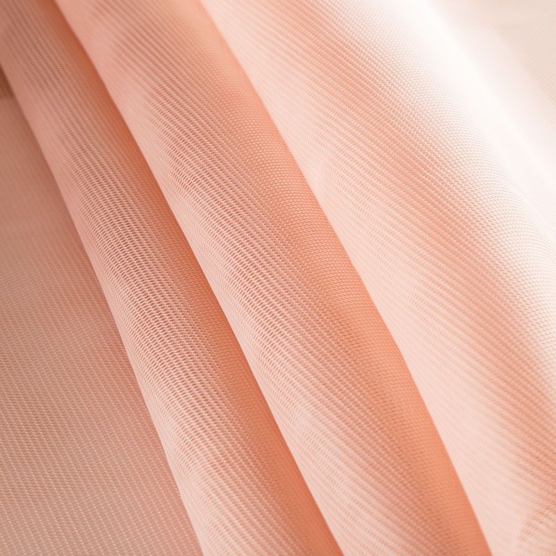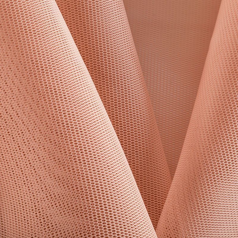 Объемный, эластичный материал персикового оттенка, состоящий из двойной мелкой сетки, по форме напоминающей соты. Упругое, мягкое с полупрозрачной фактурой полотно, пластичное и довольно прочное. Хорошо тянется, легкое и комфортное. Отлично держит форму. Рекомендуется для пошива объемных изделий или элементов: эксклюзивного жакета, бомбера, платья, юбки.