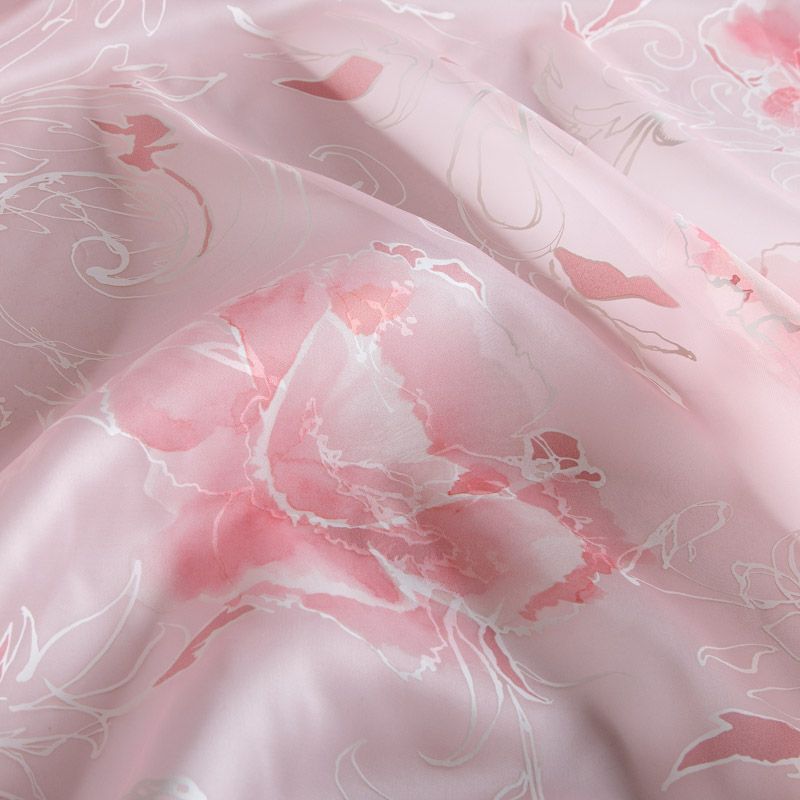 Органза шелковая 039-16957 нежно-розовый принтованный