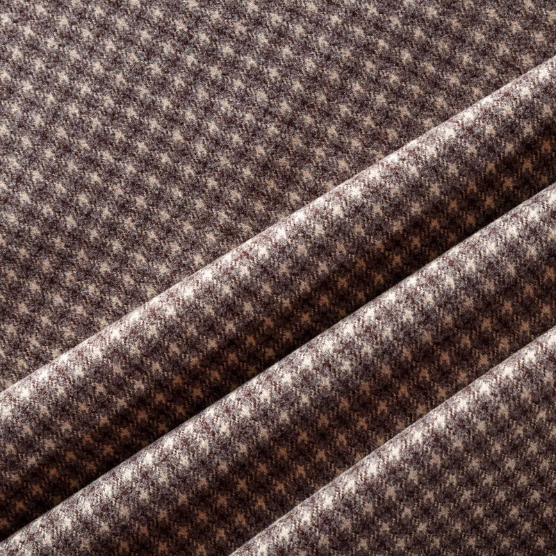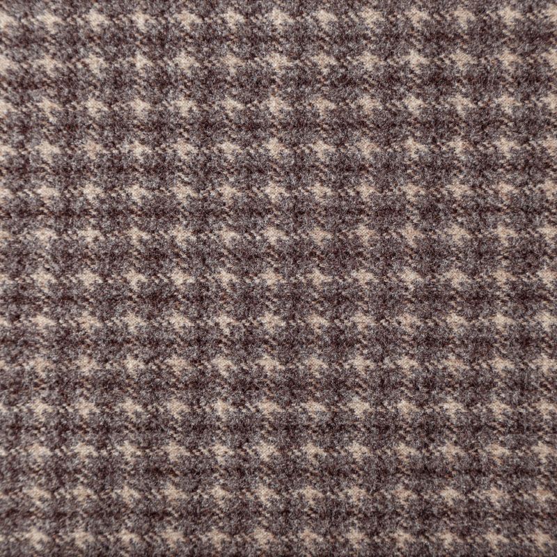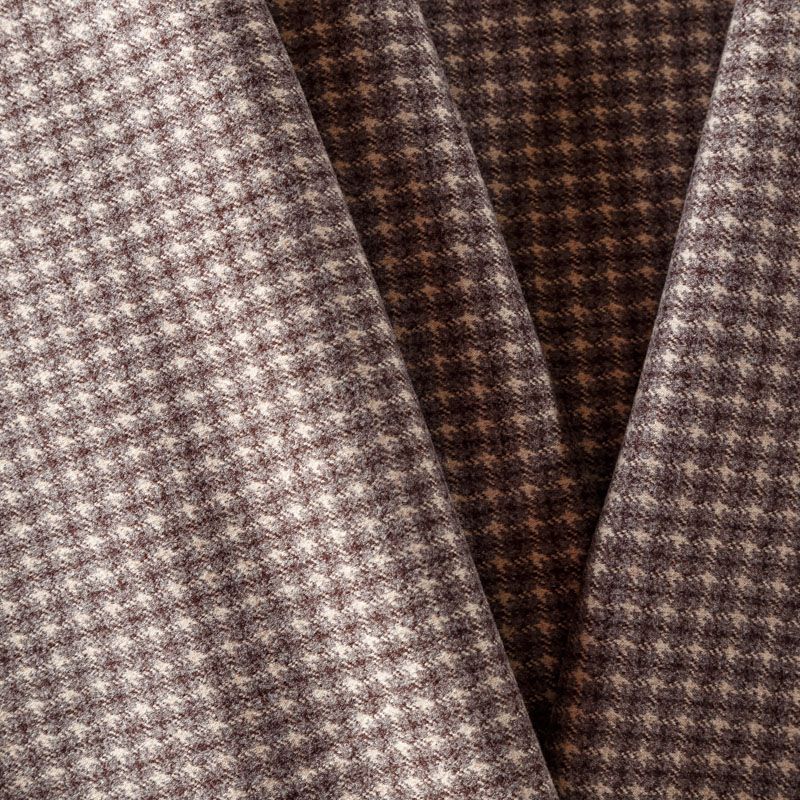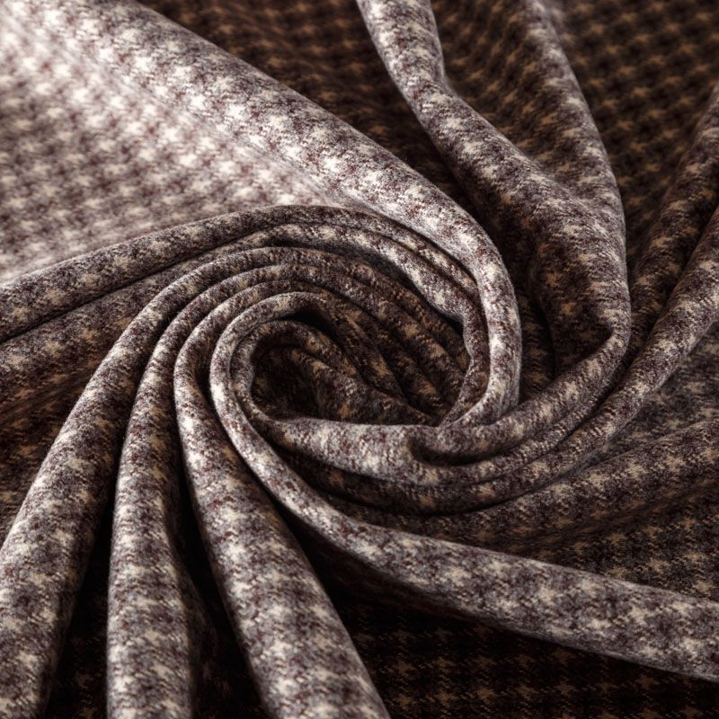 Плотный пальтовый трикотаж кофейного оттенка в мелкую молочно-серую клеточку. Ткань очень приятная на ощупь, мягкая, пластичная, теплая и уютная. Прекрасно подойдет для пошива легких пальто, теплых жакетов, курток, кардиганов, юбок или шорт.